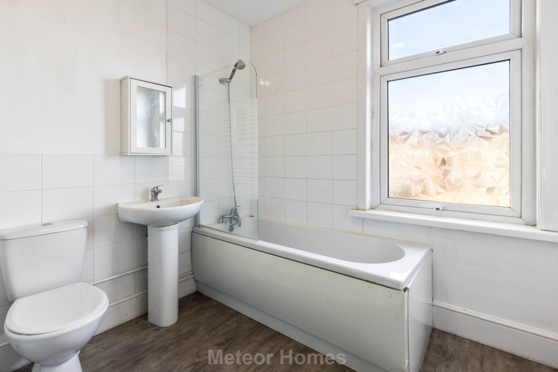 With white suite that comprises handbasin, WC and panelled bath. There is also a uPVC double glazed window and radiator.