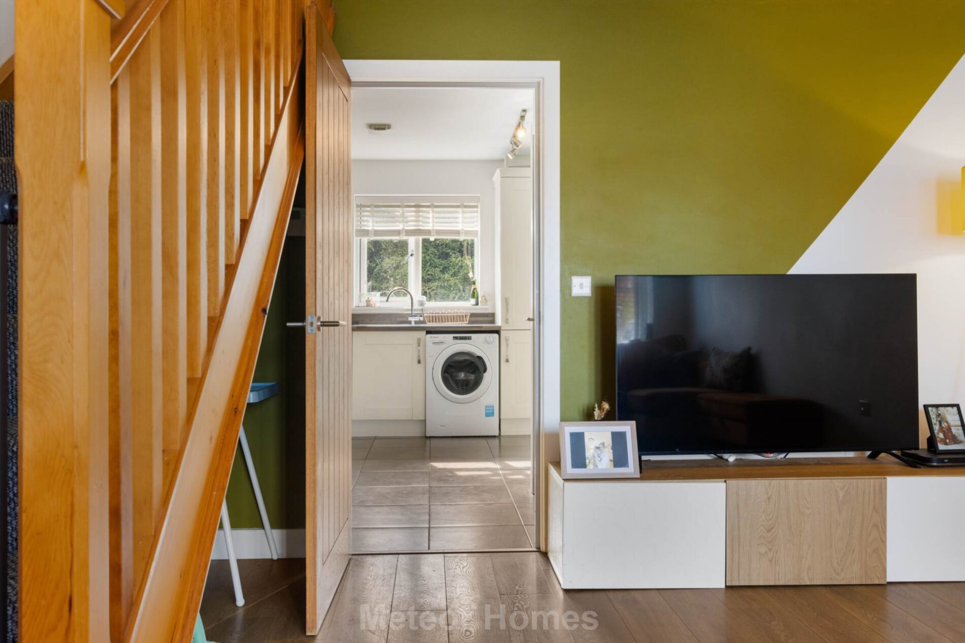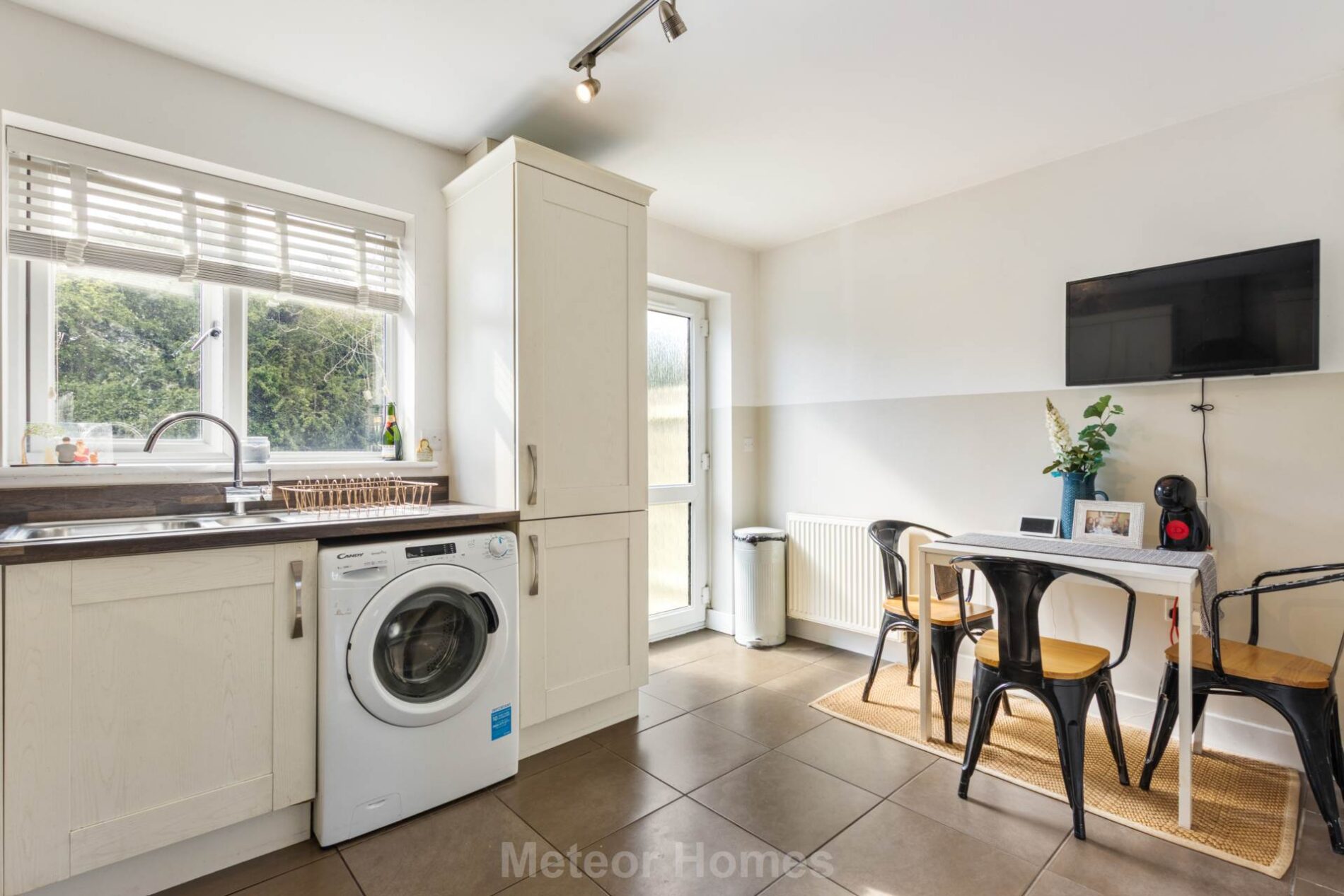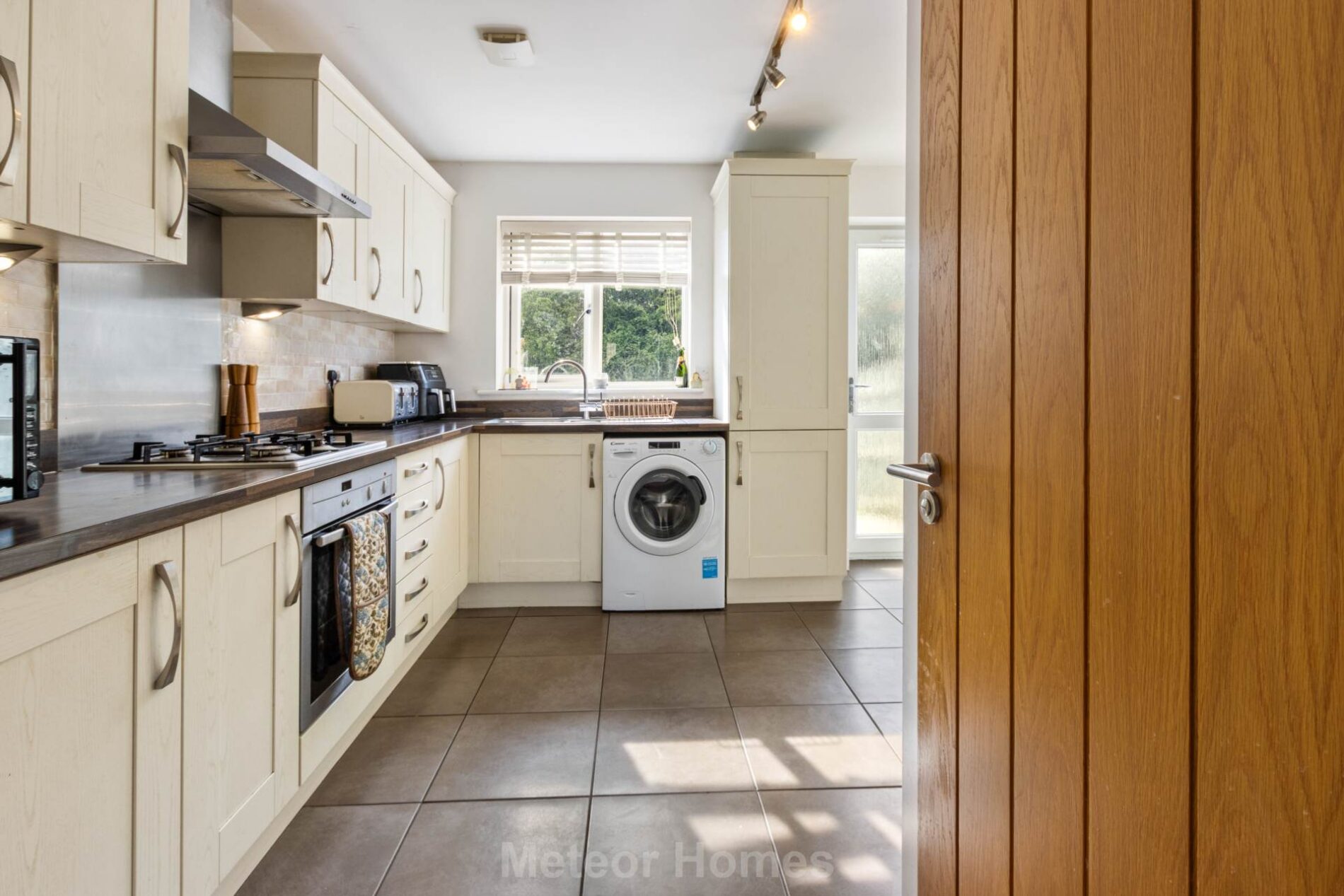 With a range of cream shaker style units, plumbing for washing machine, built in electric oven and gas hob. There is also a tiled floor, radiator, uPVC double glazed door and window to rear.