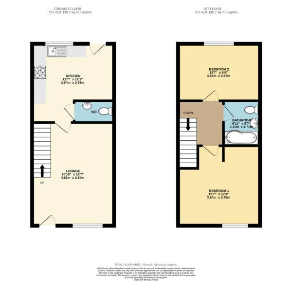 To the ground floor is a spacious and welcoming Lounge with a attractive dining Kitchen beyond. This floor is completed by a useful Cloakroom with WC. To the first floor are two double bedrooms and a well presented Bathroom. Externally there is a lawned rear garden and the aforementioned parking space.