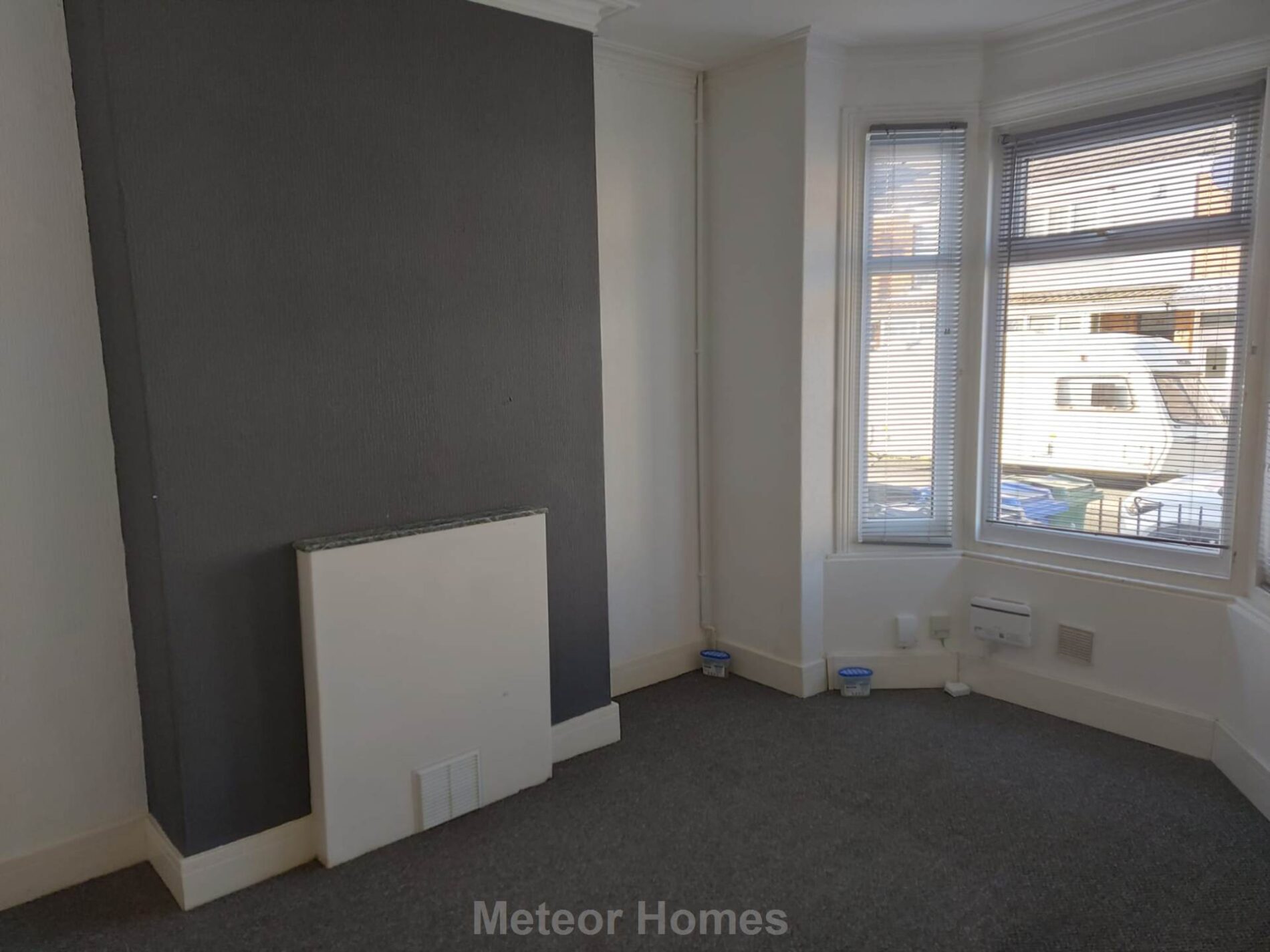 With wall in uPVC double glazed bay window and radiator.