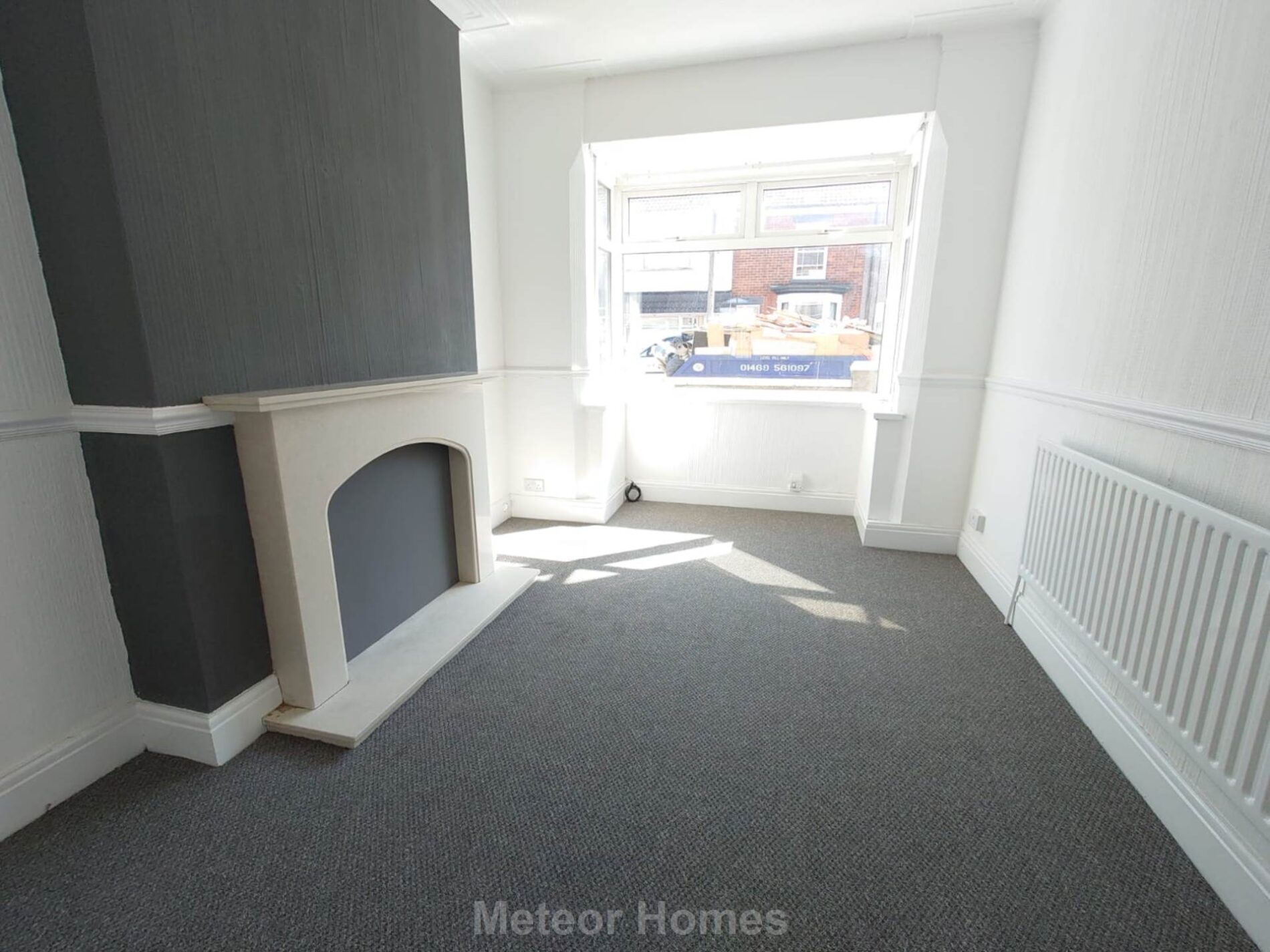 With uPVC double glazed walk in bay window to front, radiator and marble effect fire surround.