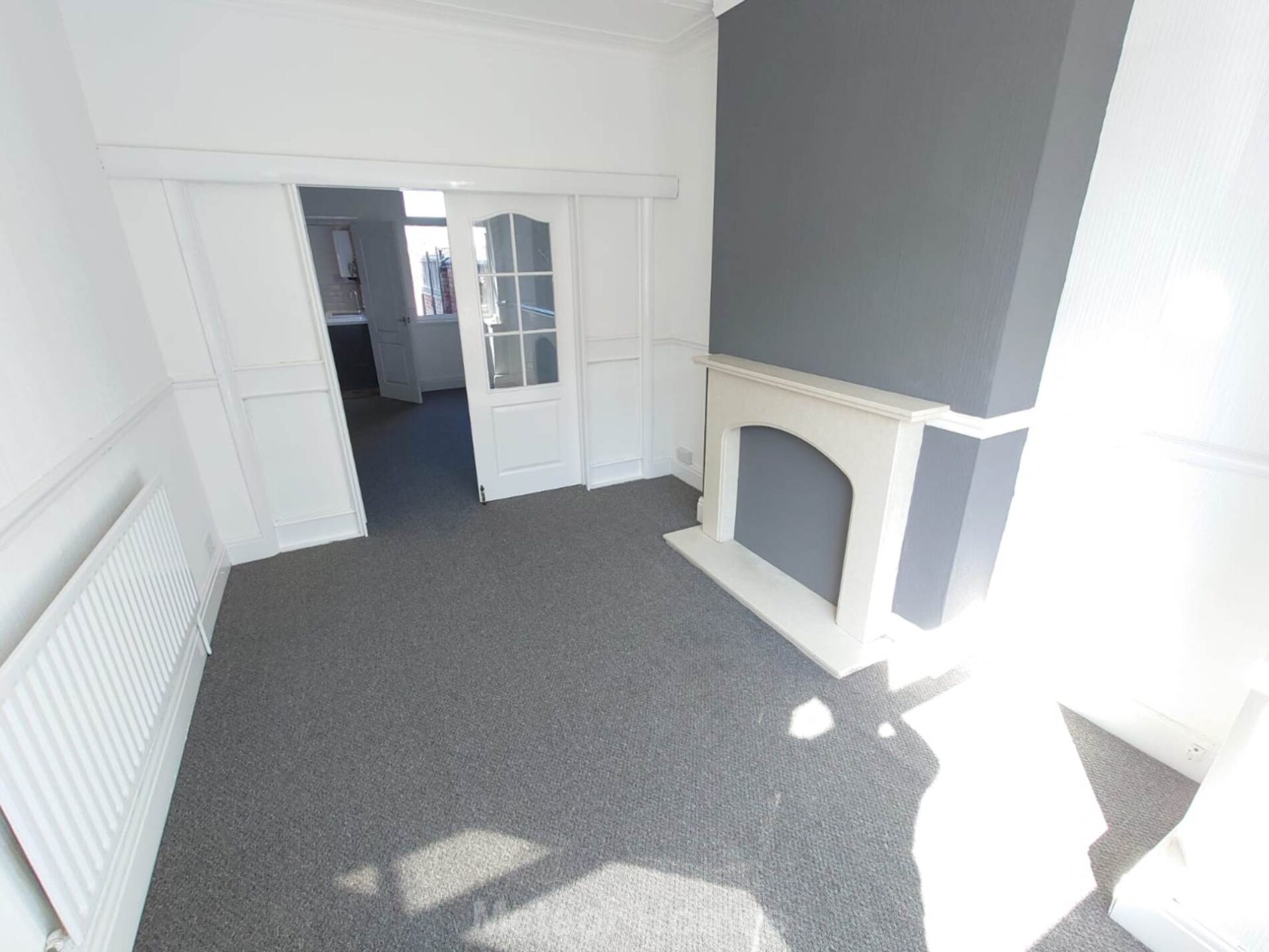 With double glass panelled doors separating the two reception rooms, understairs cupboard, radiator and uPVC double glazed window to rear.