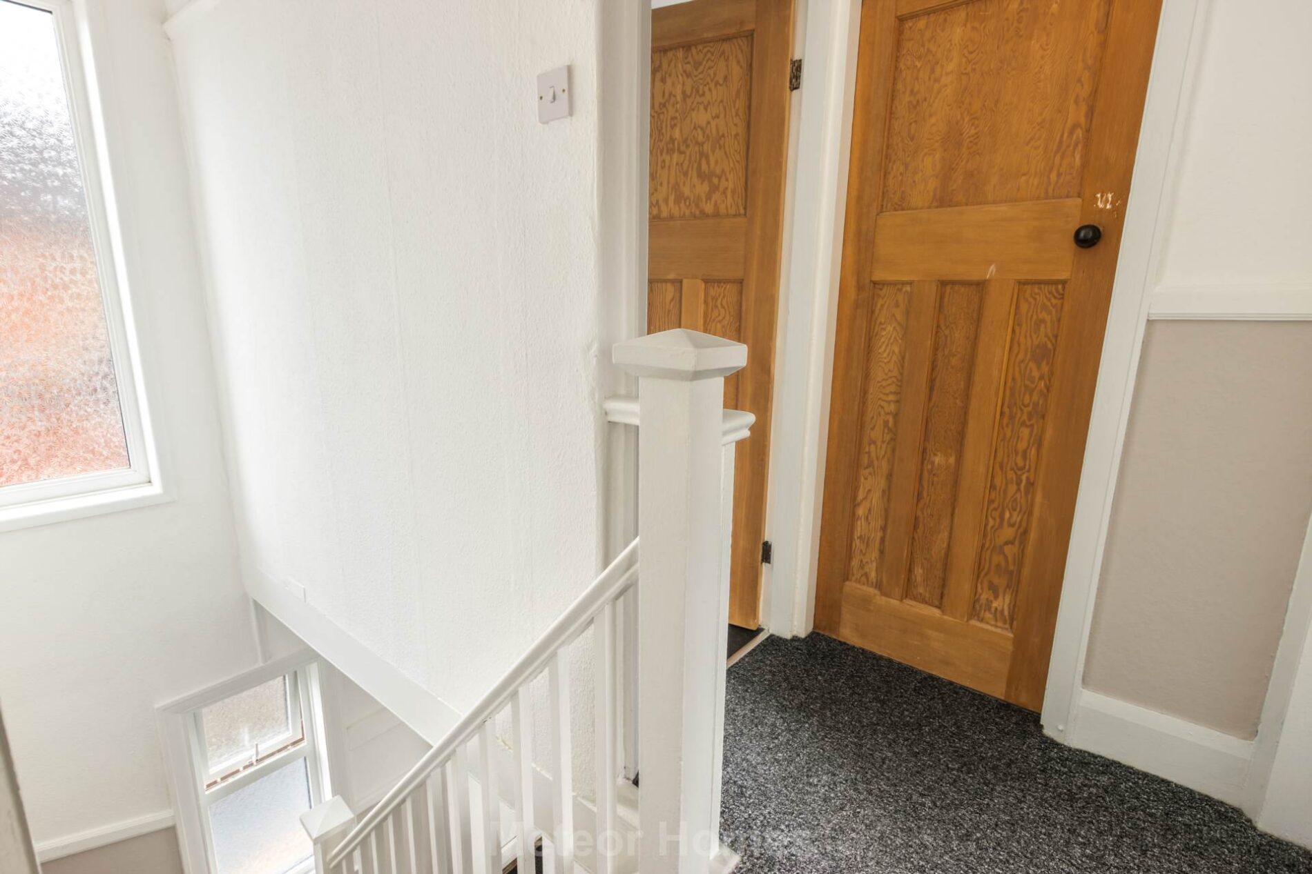 A spacious welcoming l-shaped hallway with radiator, uPVC double glazed window and understairs recess.