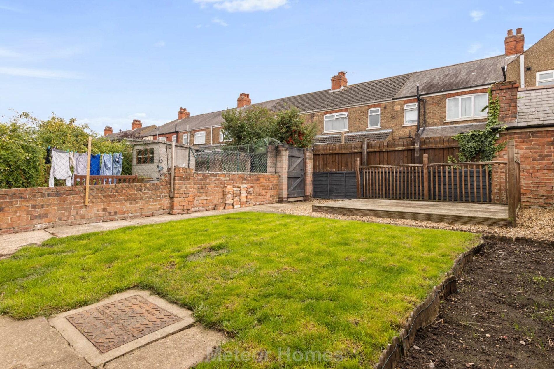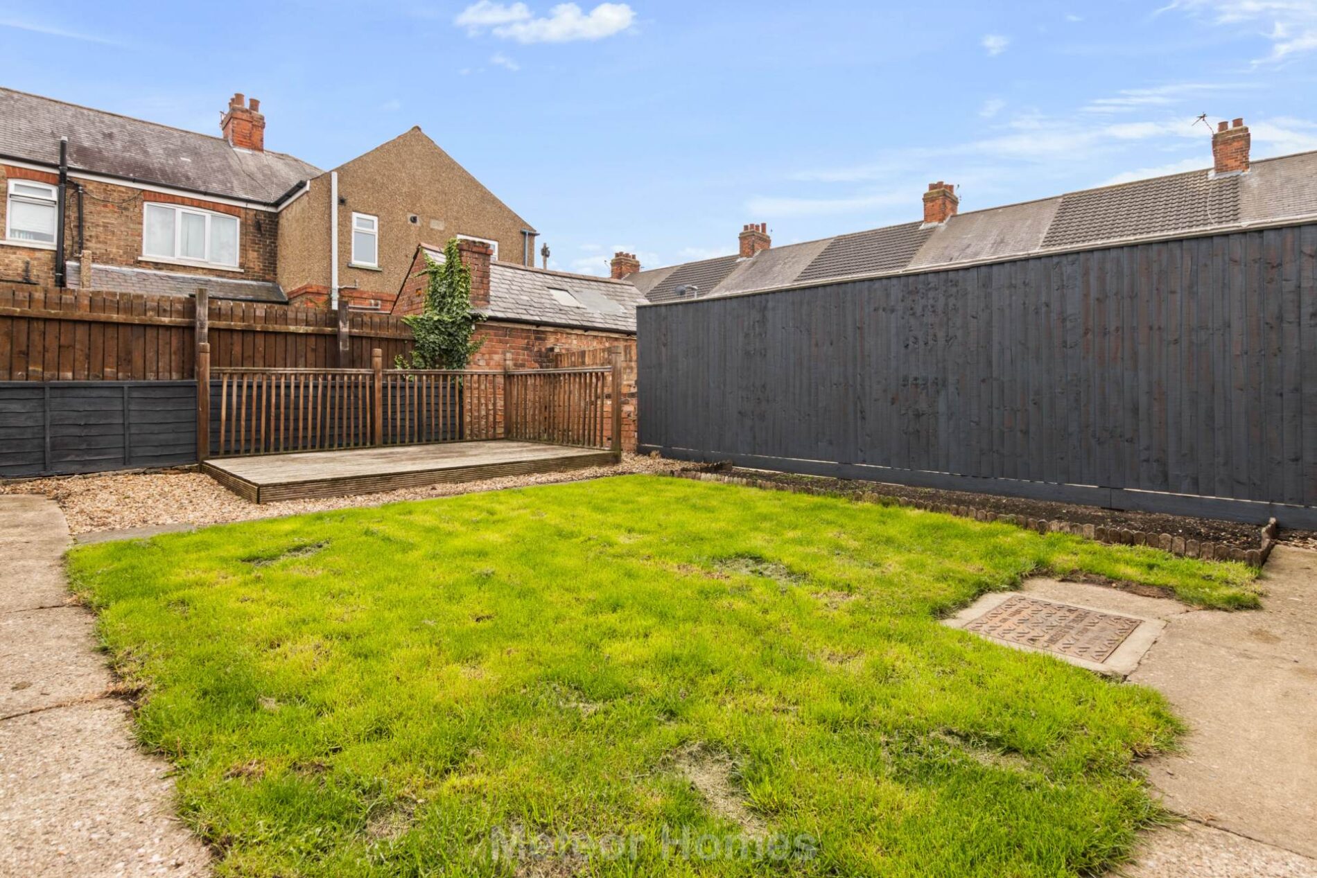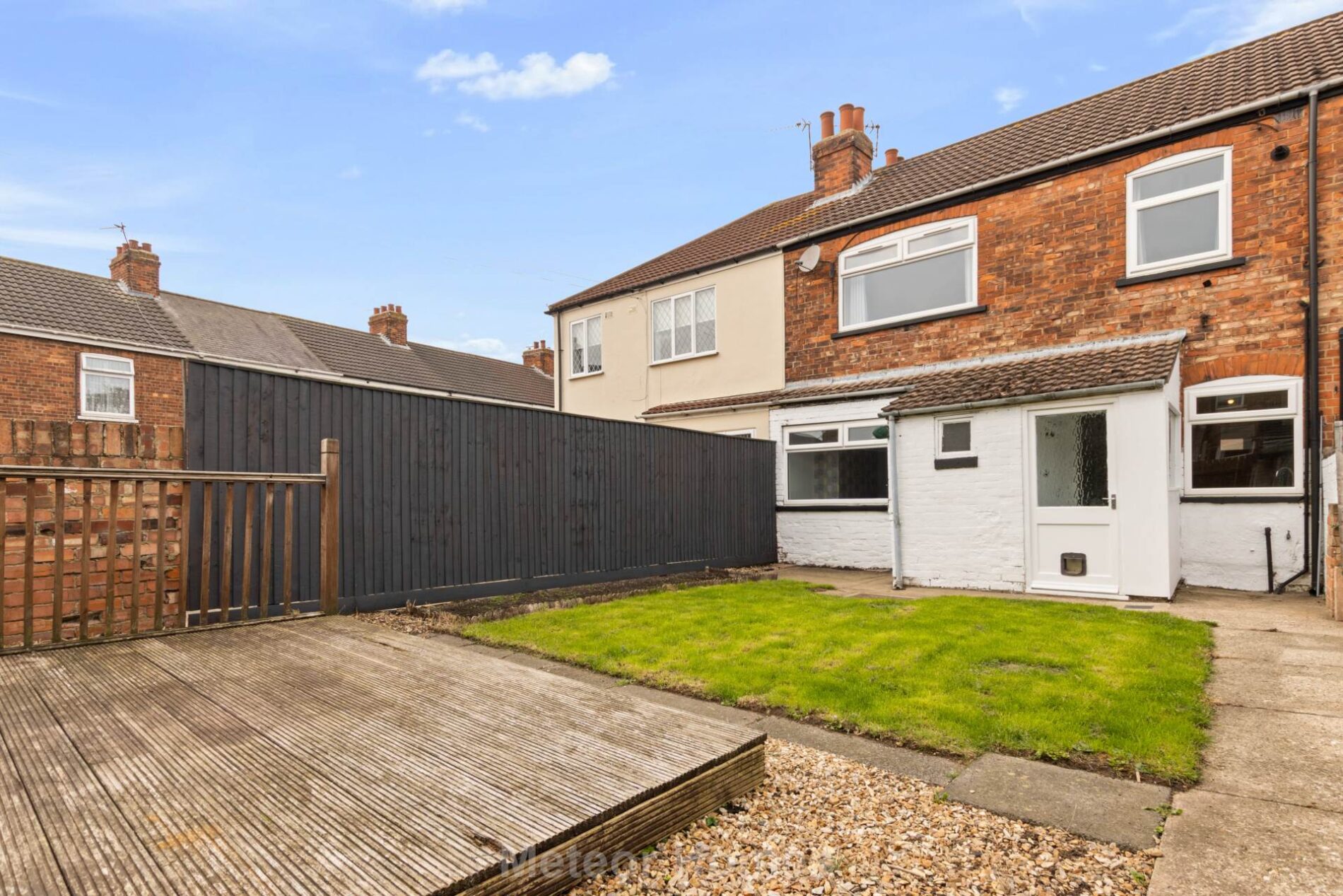 There is a small encloised front yard and a lawned rear garden that is enclosed by fencing, has a decked seating area and a covered rear porch with brick outbuildings.