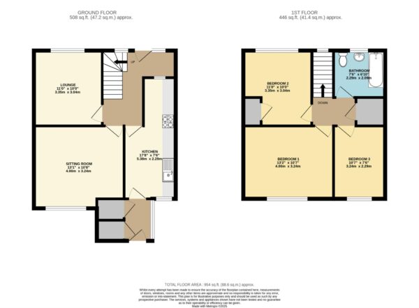On the ground floor are two reception rooms, modern fitted kitchen and a rear porch with brick outbuildings. To the first floor are three good sized bedrooms, superb bathroom and large walk in cupboard that could be adapted for other uses. Outside is a small enclosed front yard and a lawned rear garden.