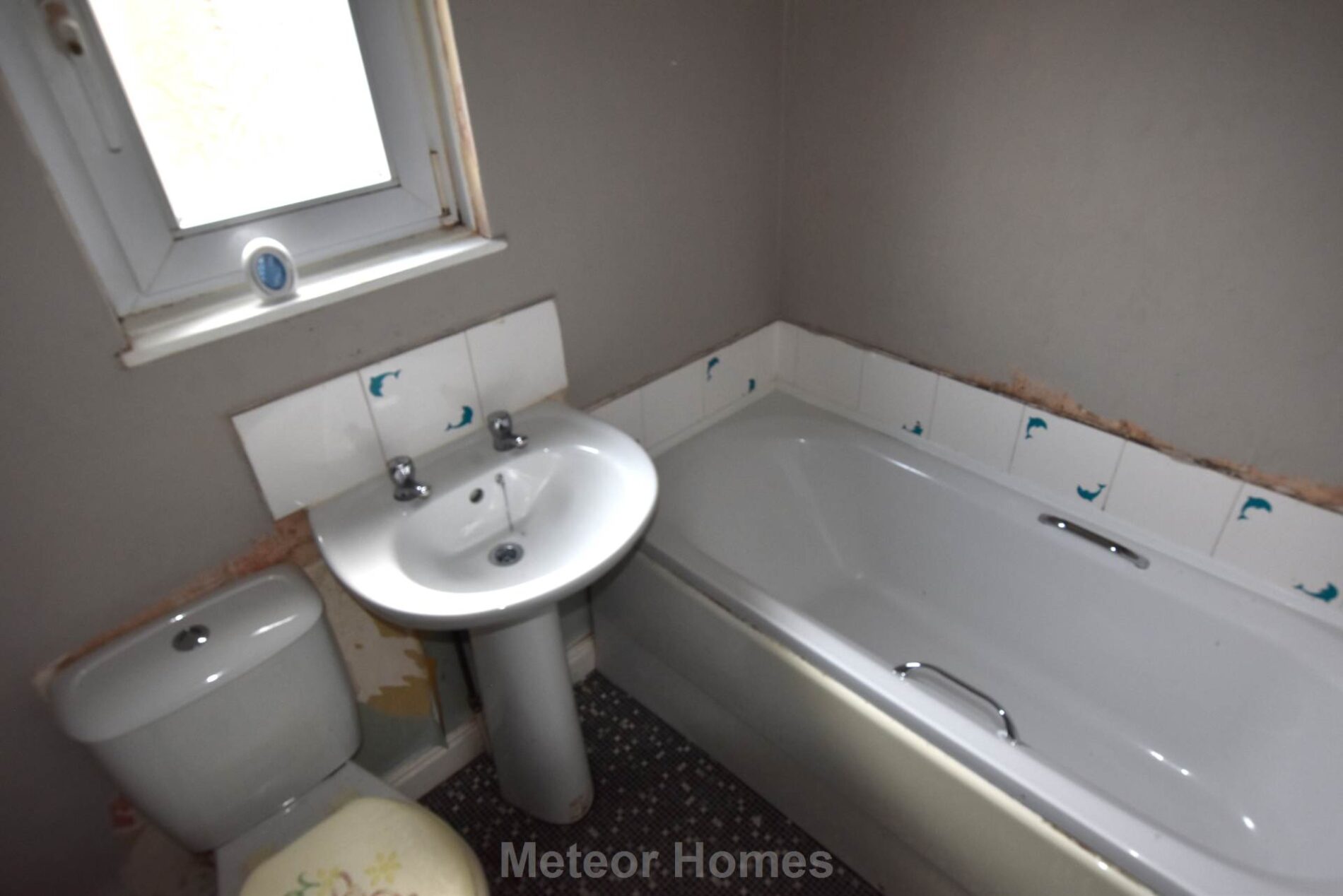 With a white bathroom suite that comprises WC, washbasin and panelled bath. There is also a radiator and uPVC double glazed window.