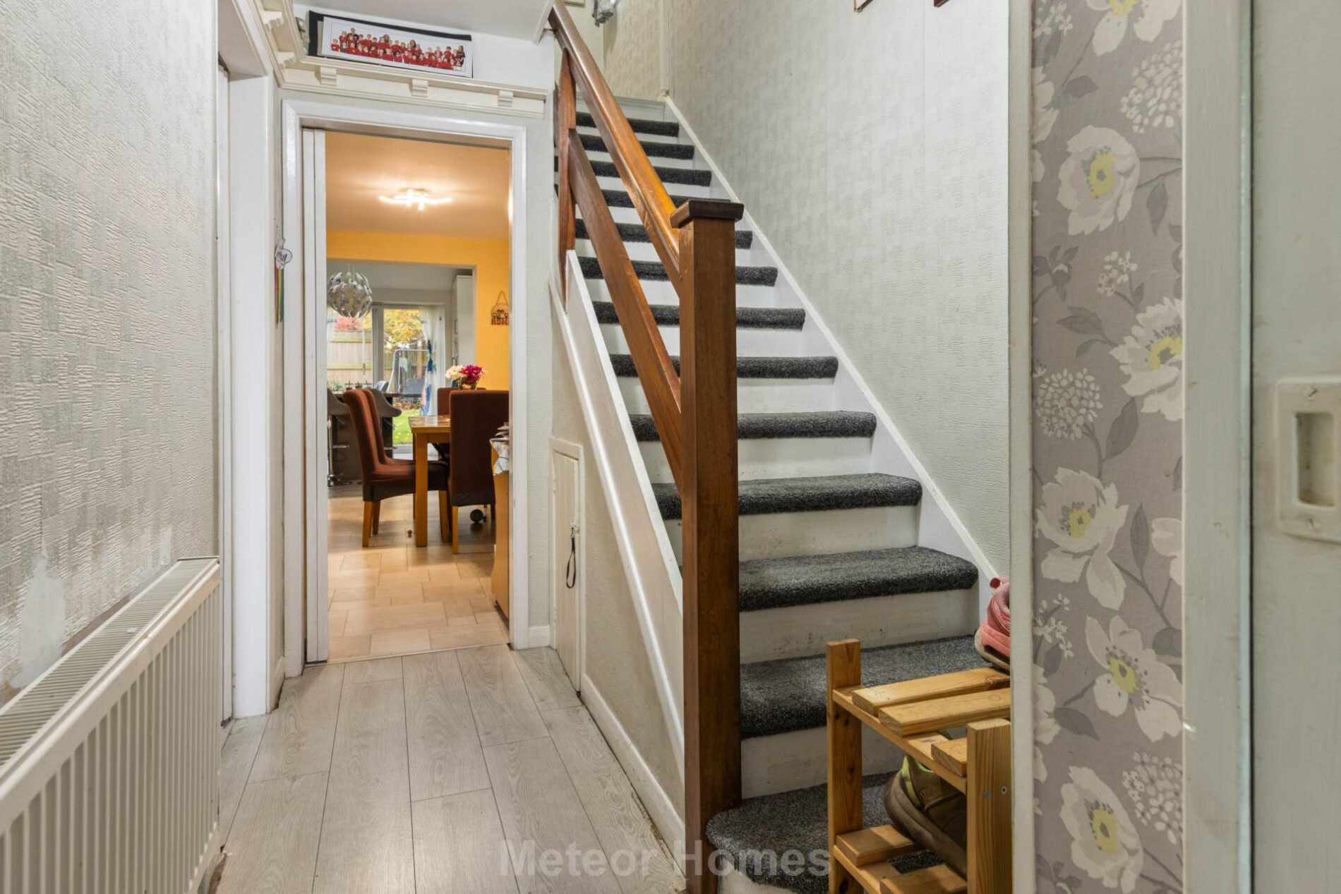 Stairs of hallway to first floor landing with built in cupboard and uPVC double glazed window.