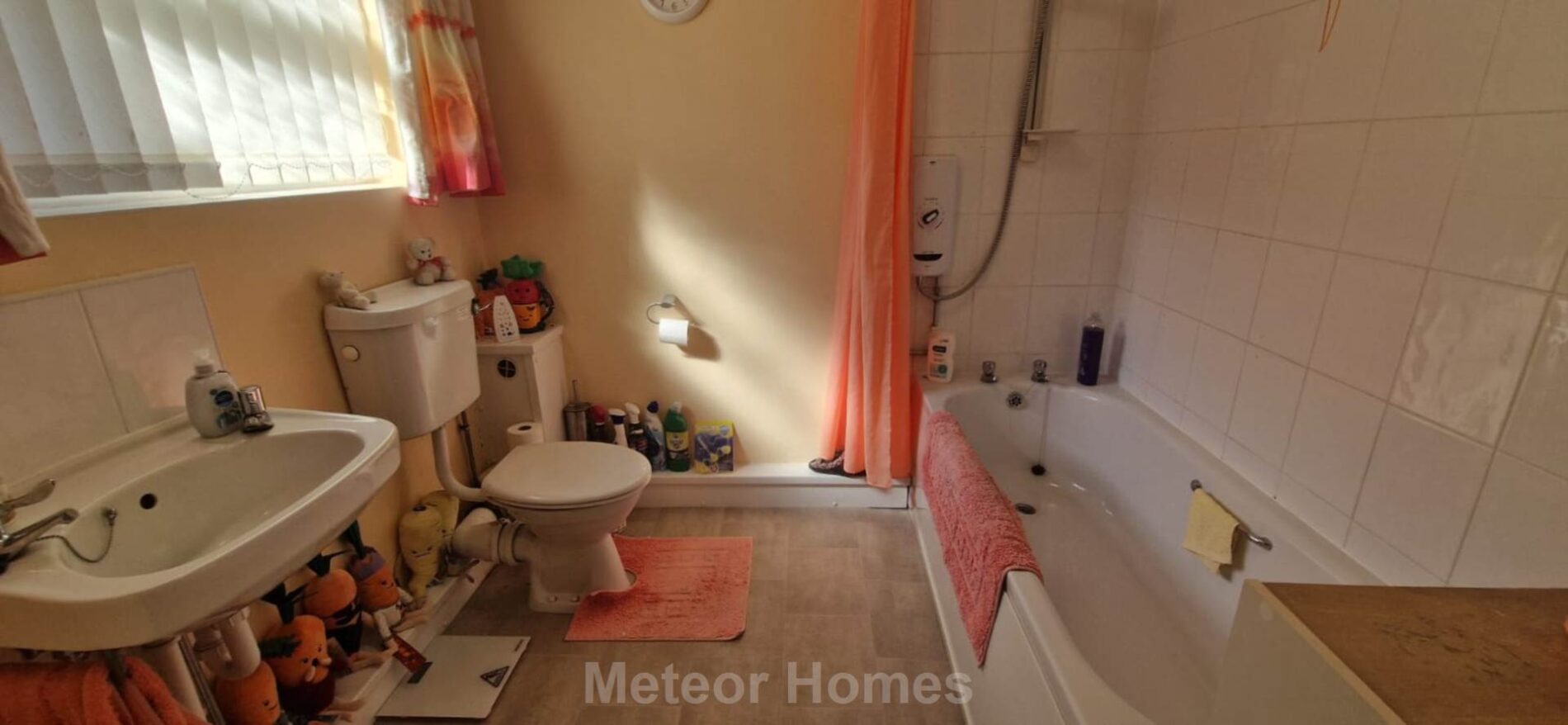 With white bathroom suite that comprises washbasin, WC and panelled bath with shower over. The room also comprises a electric radiator and uPVC double glazed window to front. The room used to be a wet room and could be returned to this relatively easily.
