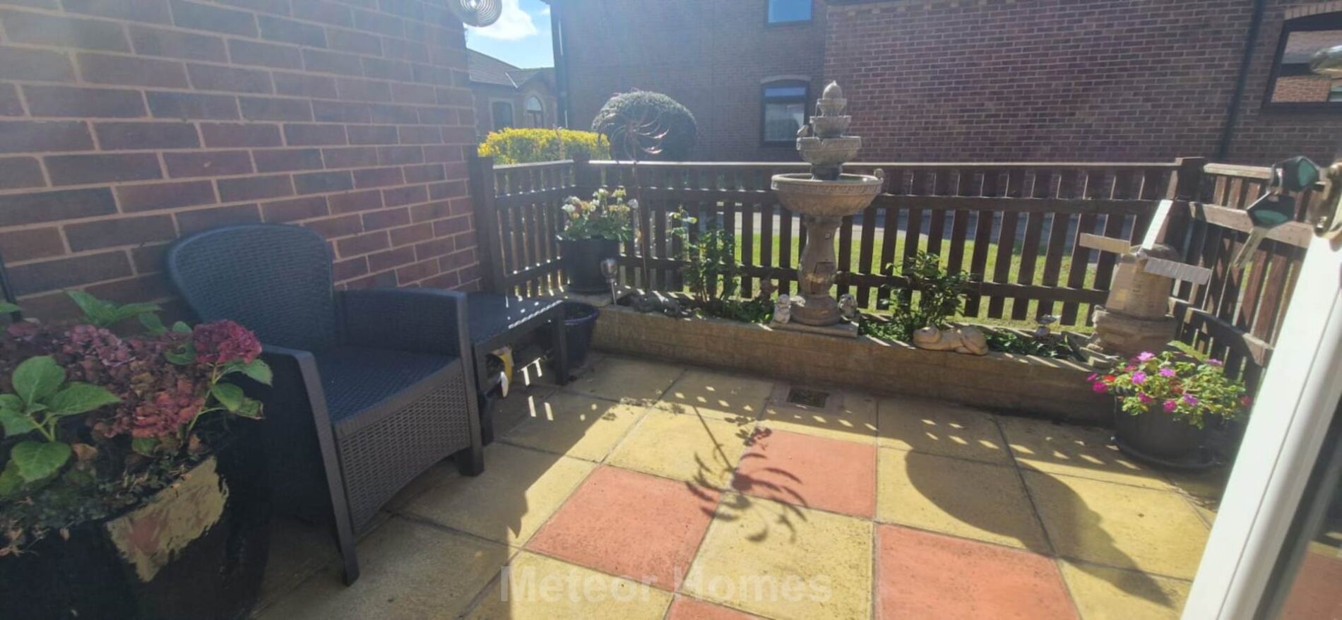 There is a delightful patio area to the front enclosed by fencing.