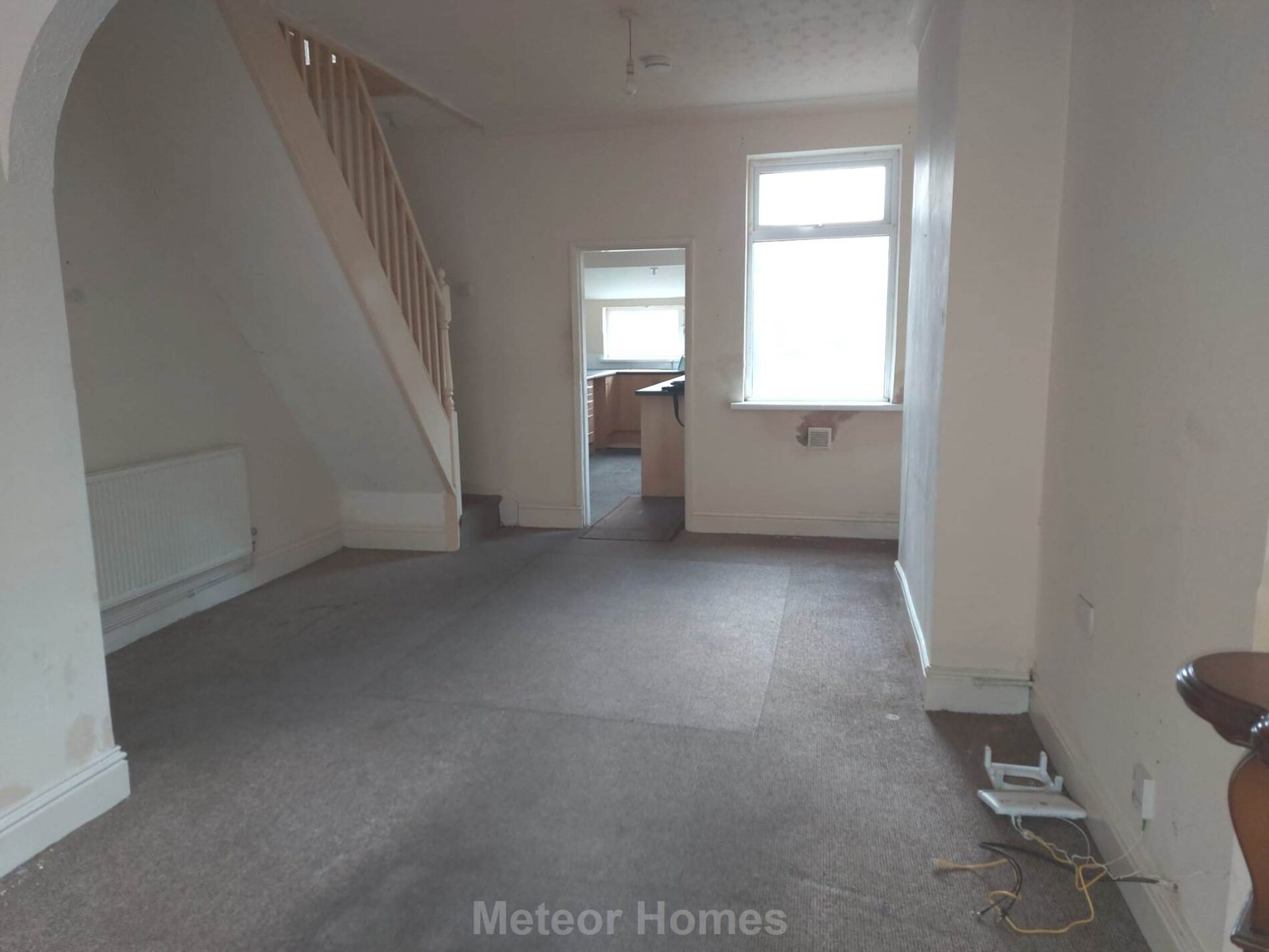 A dual aspect reception room with walk in uPVC double glazed bay window to front and uPVC double glazed window to the rear. There is also a feature gas fire, 2 radiators and staircase to first floor.